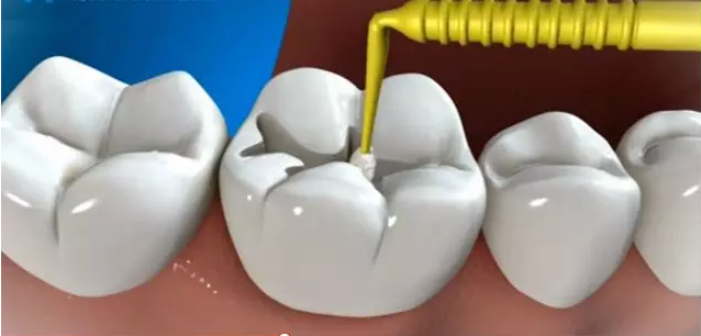 當牙體齲壞成為洞型,或者牙醫(yī)用器械探劃齲黑牙面可卡住探針,這就是牙齒需要充填了。