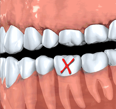 牙齒脫落后,會形成一個空缺位置,它兩側(cè)的健康牙齒在咀嚼受力時因為缺牙一側(cè)沒有支撐,就會逐漸傾斜,長此以往,牙齒會逐漸松動乃至脫落。與缺牙有咬合關(guān)系的對頜的牙齒,咀嚼時因為沒有牙齒支撐,會越變越長,最終也松動、脫落。