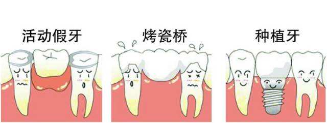 有活動假牙、烤瓷牙和種植牙這三種修復(fù)方式。