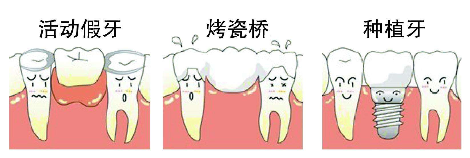 固定義齒:需磨牙,會對鄰牙造成傷害,出現(xiàn)金屬過敏等癥狀。