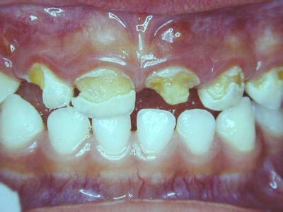 四、食物可以通過口腔細菌代謝產(chǎn)物——酸的腐蝕作用,引起齲齒。蔗糖含量高的食物比蔗糖含量低的食物更容易引起齲齒。而粘性甜食如面包、蛋糕、奶糖等最容易增加齲齒的發(fā)生。飲糖水時,齲齒并不增加。因此,不要讓孩子從小養(yǎng)成經(jīng)常吃甜食的習慣,特別是睡覺前吃糖對牙齒的危害最大。