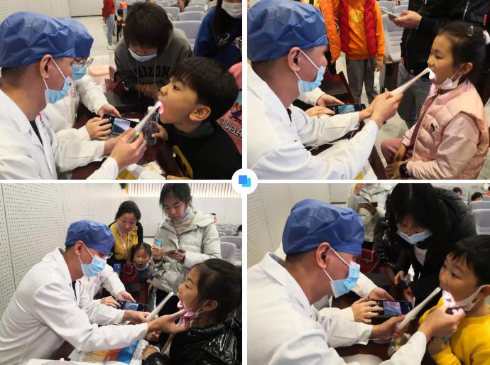 結束了有關口腔的科普課程講解后,我院愛牙公益團隊的醫(yī)生們通過牙偵探智能口腔檢測儀為現(xiàn)場所有的孩子們進行了口腔健康檢查。該檢查設備可以快速生成圖文并茂的報告單,家長們只需要通過掃描二維碼就可以獲取檢查結果,方便家長直觀了解孩子們的口腔健康狀況,更可以通過在線咨詢口腔醫(yī)生,免費與專業(yè)口腔醫(yī)生針對病癥做進一步溝通。