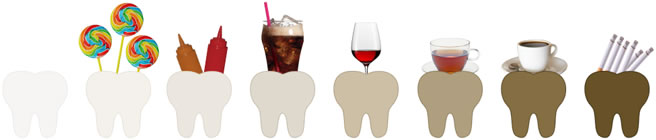 外源性變色:因攝入咖啡、茶、醬油等食物,吸煙、牙齦出血等。