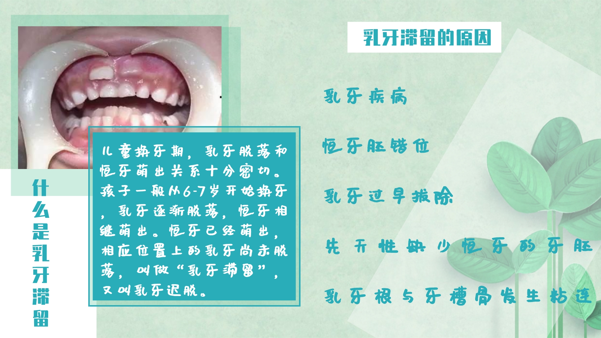2、先天缺失恒牙可使乳牙根吸收緩慢造成滯留。