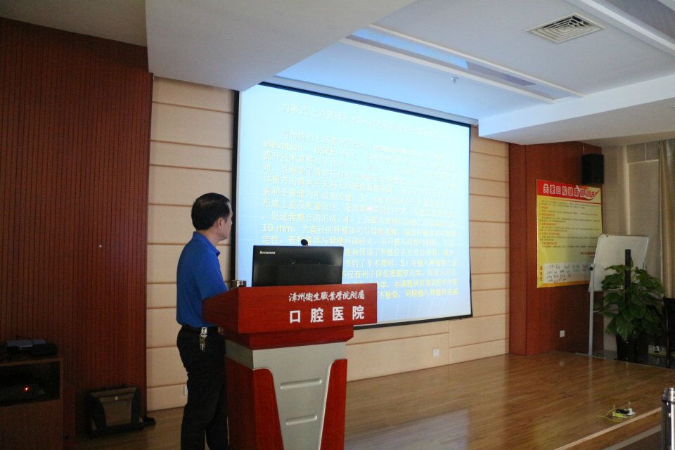 此次活動(dòng)特別邀請(qǐng)漳州市口腔醫(yī)學(xué)會(huì)會(huì)長陳永輝主任擔(dān)任主講嘉賓。陳永輝為主任醫(yī)師、副教授、碩士生導(dǎo)師,現(xiàn)任福建醫(yī)科大學(xué)附屬漳州市醫(yī)院口腔科主任、福建省口腔醫(yī)學(xué)會(huì)常務(wù)理事、福建省口腔醫(yī)學(xué)會(huì)種植專業(yè)委員會(huì)副主任委員、福建省口腔醫(yī)學(xué)會(huì)粘膜病專業(yè)委員會(huì)常委、漳州衛(wèi)生職業(yè)學(xué)院口腔醫(yī)學(xué)專業(yè)指導(dǎo)委員會(huì)主任委員、中華口腔醫(yī)學(xué)會(huì)種植專業(yè)委員會(huì)�?茣�(huì)員、國際種植聯(lián)盟(InternationalTeamForImpalantologyITI)會(huì)員,擅長口腔種植及口腔黏膜病的綜合治療,發(fā)表學(xué)術(shù)論文二十余篇。