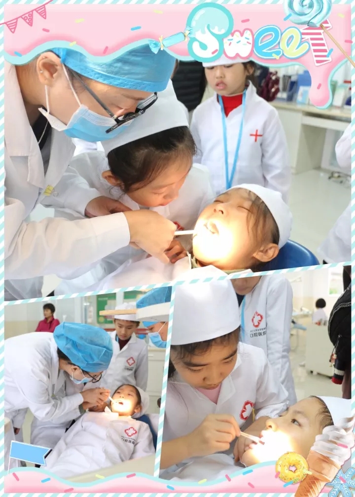 現(xiàn)在來看看小牙醫(yī)們給粑粑麻麻、小伙伴們檢查牙齒的畫面吧,看這專業(yè)的姿勢就知道咱們小牙醫(yī)可不只是來玩玩而已哦!