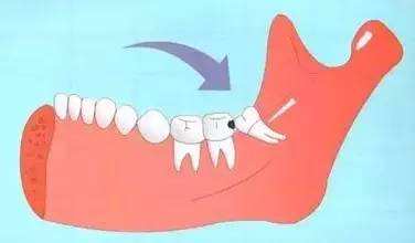 3、大多數(shù)智齒前傾阻生,即呈45度左右角頂在第二磨牙上,兩個牙冠形成一個夾角而嵌塞食物,時間久了,第二磨牙形成齲壞直至牙髓炎而劇疼。另一個后果是前傾的智齒持續(xù)加力于第二磨牙,使其形成牙周炎而疼痛松動,不得不拔除第二磨牙,或須拔除這兩顆牙,而咀嚼功能嚴(yán)重受損。